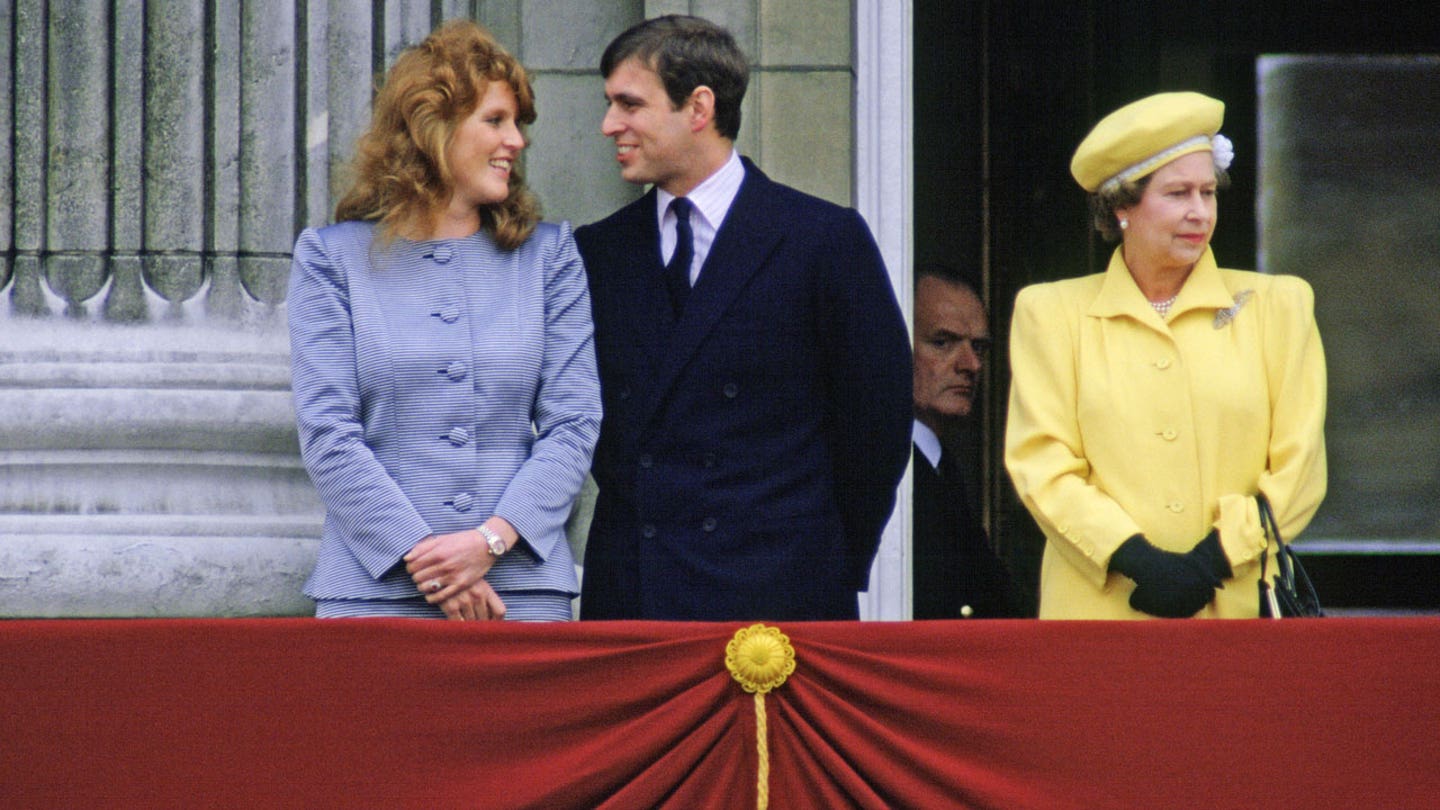 O Príncipe Andrew e Sarah Ferguson foram casados por 10 anos e depois se divorciaram em 1996. Eles posaram na varanda do Palácio de Buckingham em 1986 para marcar o 60º aniversário da Rainha. (Tim Graham/Imagens Getty)