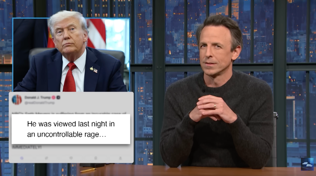 Seth Meyers deu uma resposta caracteristicamente irônica às chicotadas públicas do presidente no fim de semana, descrevendo os apelos públicos de Donald Trump para a demissão do apresentador da madrugada como uma “carta atenciosa de fãs”.