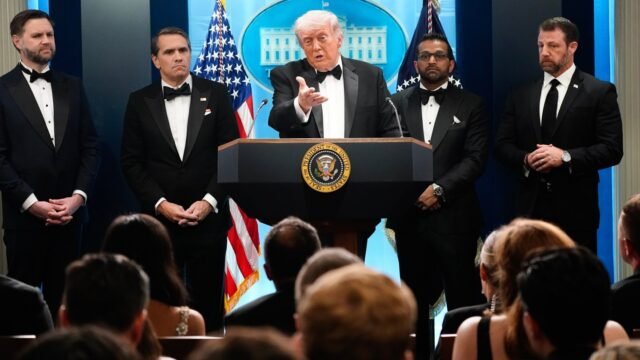 “O homem foi capturado”, disse Trump sobre o suspeito durante seu briefing com a imprensa. “Eles vão para o apartamento dele. Acho que ele mora na Califórnia e é uma pessoa doente, muito doente, e não queremos que nada disso aconteça.”