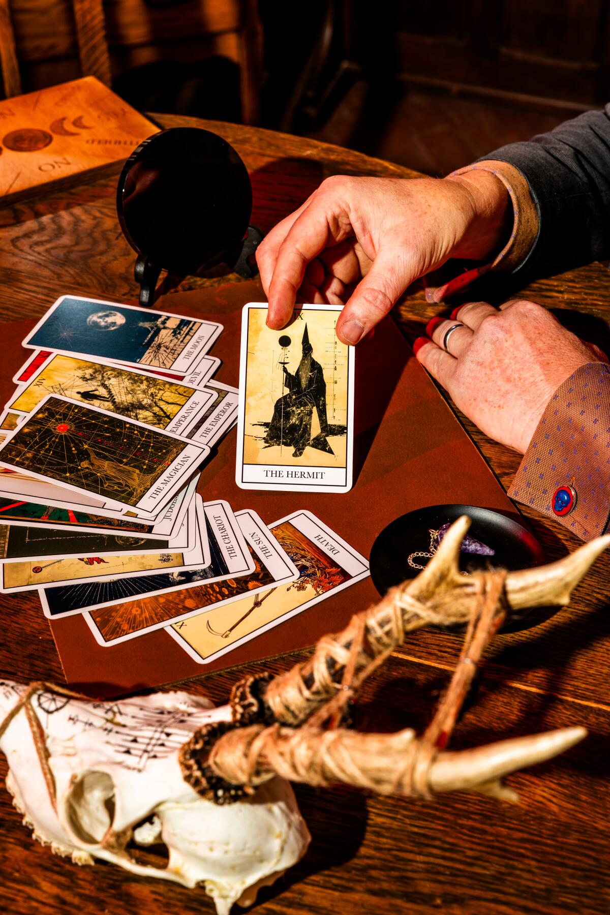 Estou sentado em uma tenda montada no corredor de uma casa vitoriana. Na minha frente estava um tabuleiro espiritual, uma carta de tarô solitária e um espelho preto gritante. Estou aqui para me comunicar com os mortos.