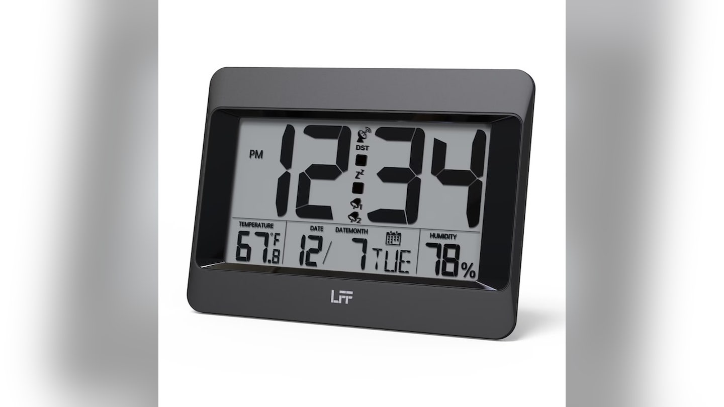 Se você quer um relógio simples com números grandes e fáceis de ler, é isso Um despertador molecular Tudo que você precisa está lá. Relógio operado por bateria exibe temperatura interna, umidade, data e hora. Mesmo que o horário de verão termine, o relógio será atualizado automaticamente para a hora correta. Projetado para caber na parede ou na mesa de cabeceira, este alarme é fino e compacto.