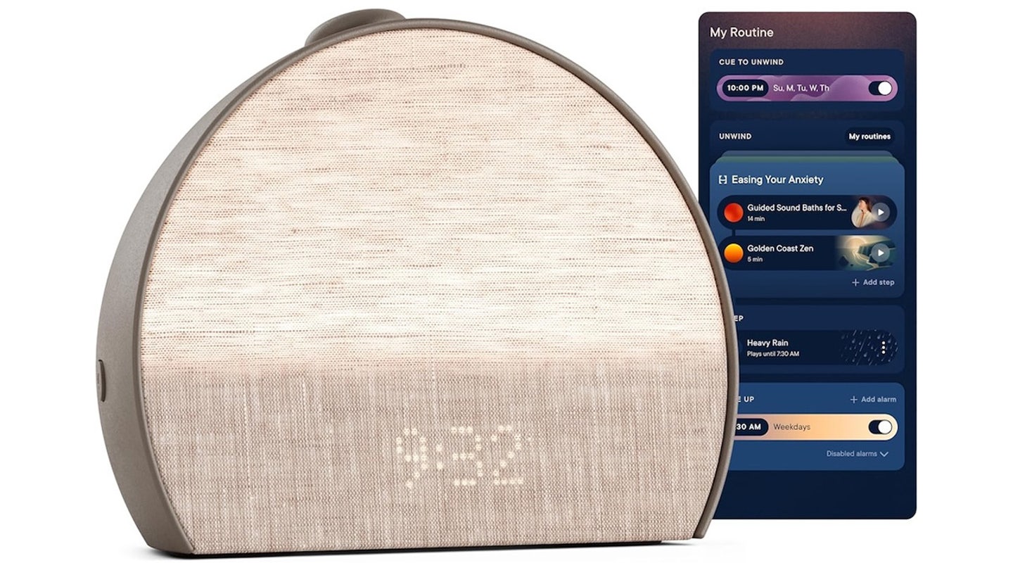 Crie uma rotina de quarto que você siga Despertador Hatch Restore 3. É um despertador completo que também ajuda você a dormir e relaxar. Você pode escolher entre mais de 80 sons para dormir e o recurso de despertador do nascer do sol ajuda você a acordar de forma natural e suave. Em vez de um alarme alto e estridente, o Hatch acorda você com sons suaves e uma luz gradualmente mais intensa que imita o sol. Usando o aplicativo Hatch Sleep, você pode personalizar seus horários de dormir e acordar, ouvir histórias antes de dormir e receber meditações guiadas.