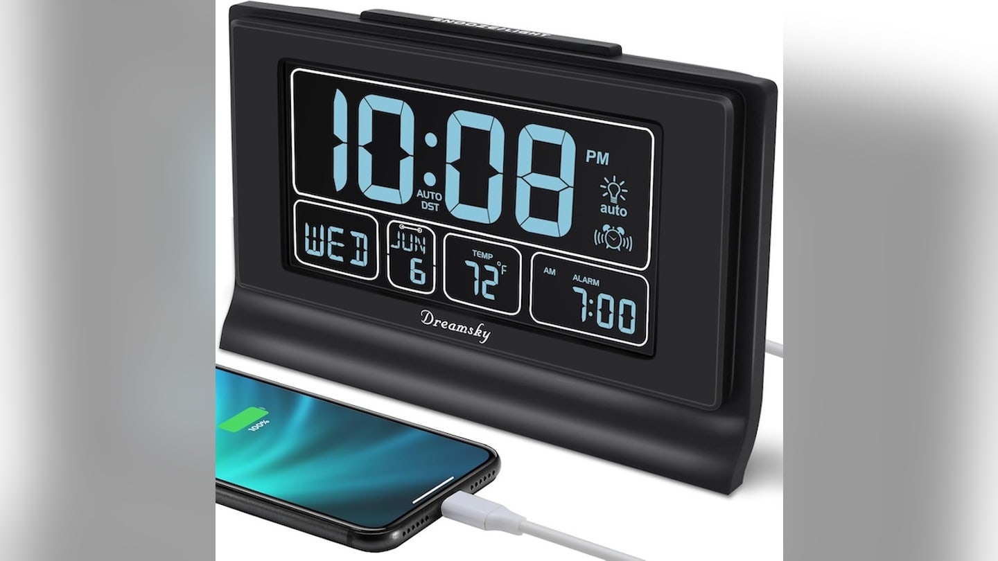 O Despertador Digital DreamSky Possui uma grande tela LCD que se ajusta automaticamente à hora correta. Você pode alterar o nível de brilho durante a noite, para que o relógio não acorde você. Para usar o recurso de alarme, defina o horário de despertar e você ouvirá um bipe alto e não ajustável. O relógio possui duas portas USB, para que você possa carregar seus dispositivos enquanto dorme.