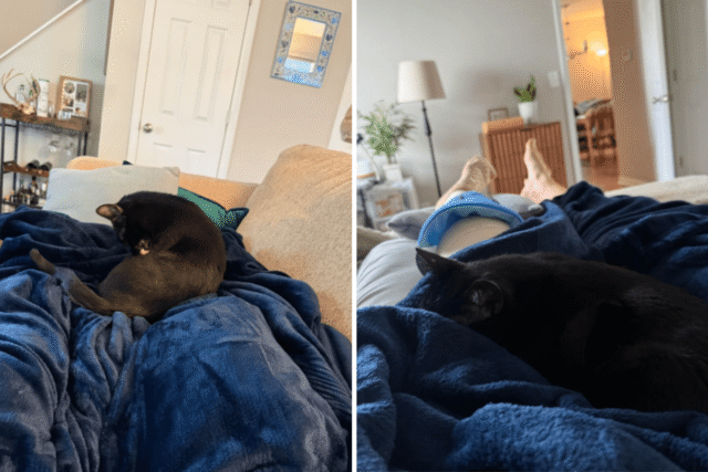 A dona do gato faz uma cirurgia no joelho – o que ela faz durante a recuperação derrete seu coração