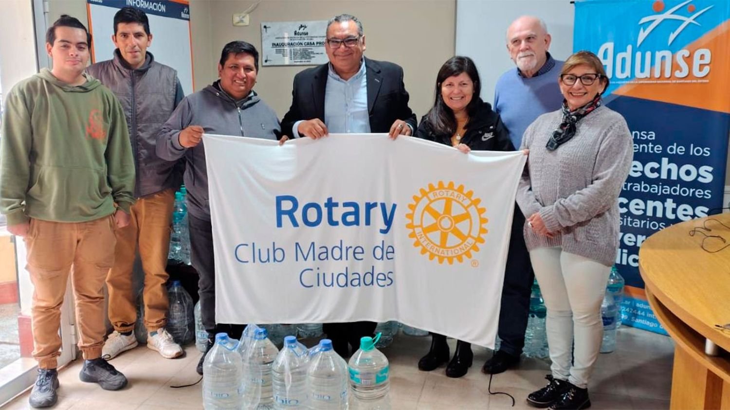 O Associação de Professores da Universidade Nacional de Santiago del Estero (ADUNSE) E o Rotary Mãe das Cidades Foi realizado um programa de solidariedade conjunto com Distribuição comercial de água potável Destinado a famílias do Departamento de Los Telares Salivaafetar o crescimento de doce rio.