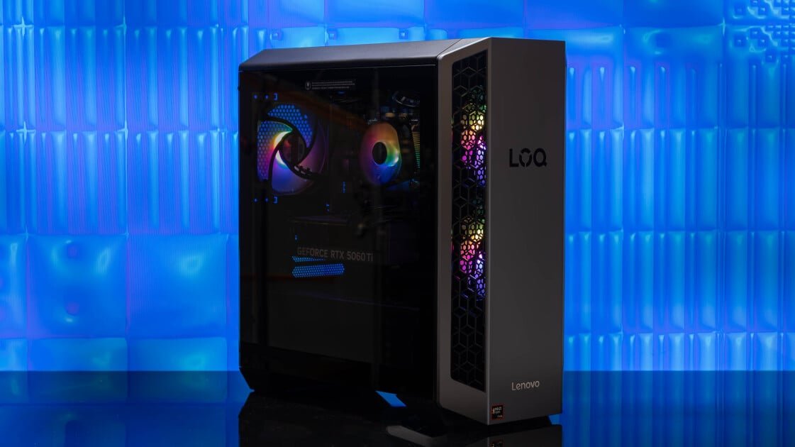 Agora, mesmo à venda, este LOQ não é exatamente uma torre econômica. Mas a Lenovo não deixou um bom caminho para atualização aqui no sentido inverso, ou seja, na fonte de alimentação. Este é um modelo menos impressionante de 500 watts, mas também é exclusivo e possui um conector incomum para a placa-mãe. Não é robusto o suficiente para lidar com a GPU RTX 5060 Ti e, a menos que você obtenha uma fonte de alimentação melhor, provavelmente terá dificuldade em atualizar sua CPU ou GPU nos próximos anos. Para isso, temos que contar com os fornecedores de componentes da Lenovo.
