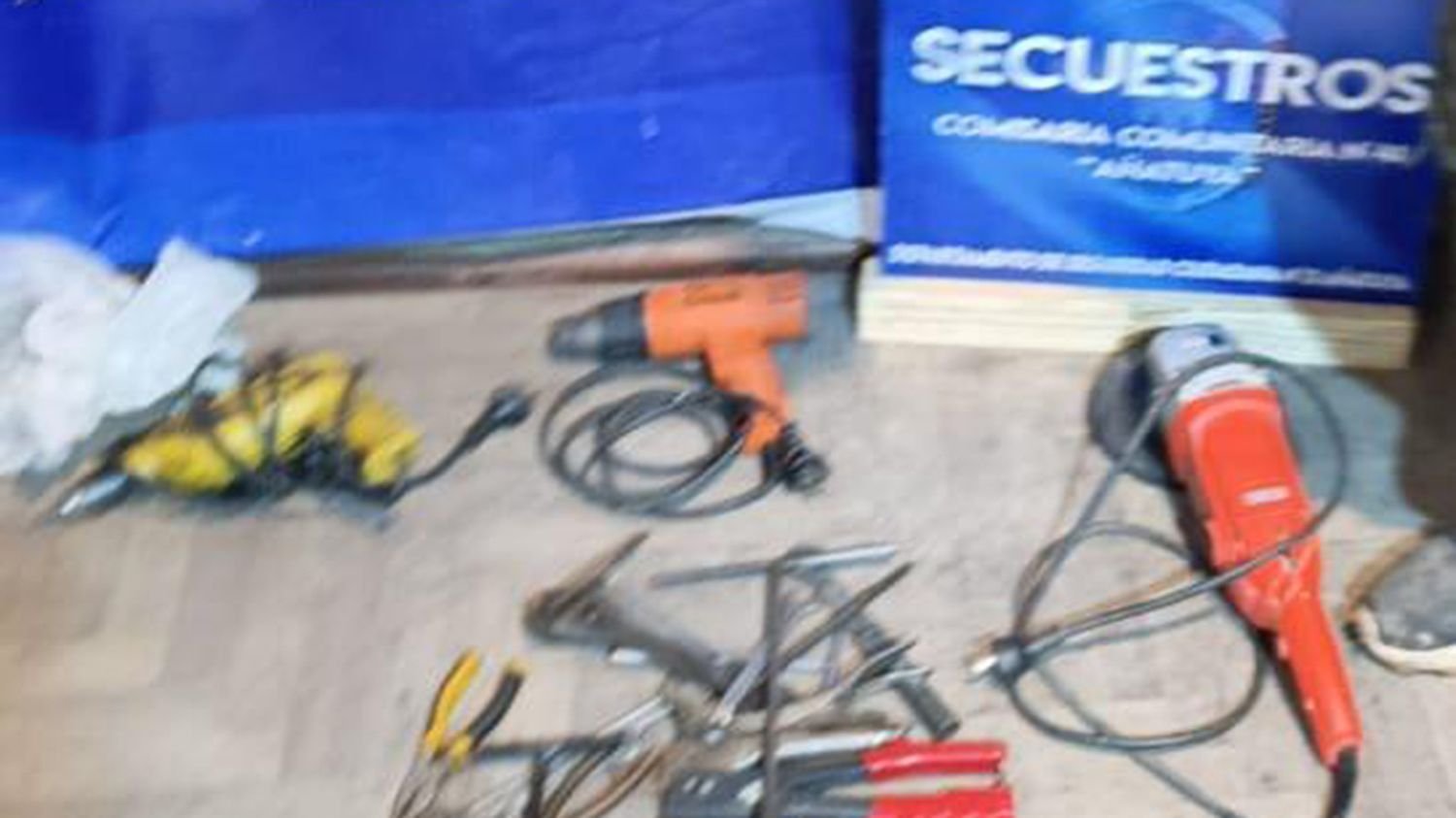 Entre os itens apreendidos PolidorJogos chavesum arma quente E um Furadeira elétricaTodos os itens de trabalho da vítima.