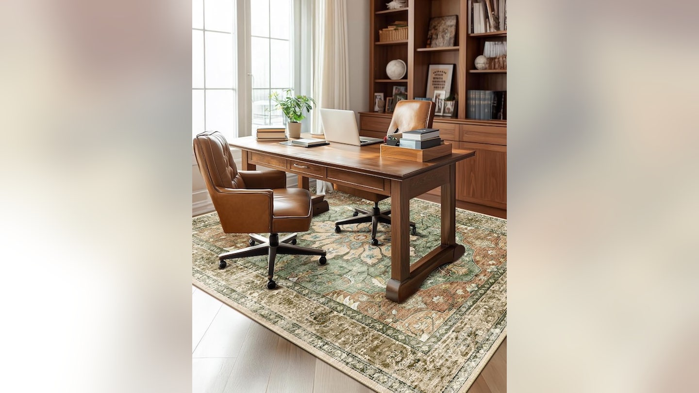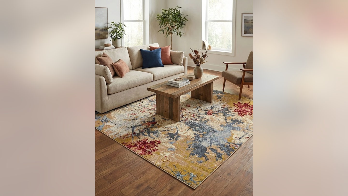 Mude seu espaço com isso Um grande tapete de estilo oriental. Azuis, vermelhos e amarelos adicionam calor, enquanto o material resistente a manchas ajuda a controlar derramamentos. O tamanho de 7 pés e 10 polegadas por 10 pés e 3 polegadas oferece bastante cobertura.