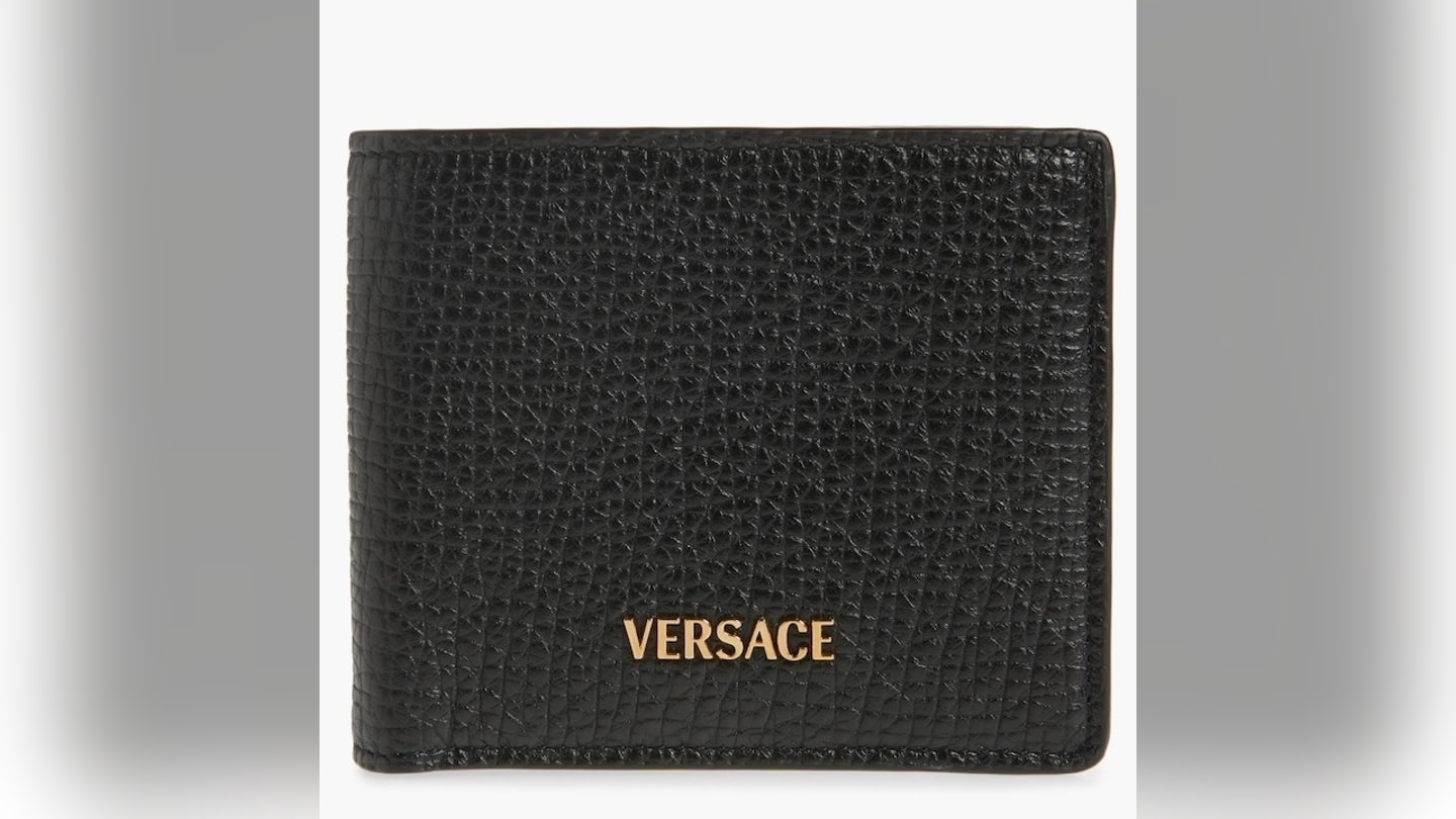 É habilmente elaborado Carteira de couro Versace Feito de couro italiano. Possui seis compartimentos para cartões, dois bolsos deslizantes e dois bolsos para moedas para um espaço ideal e o interior azul claro dá um toque extravagante.