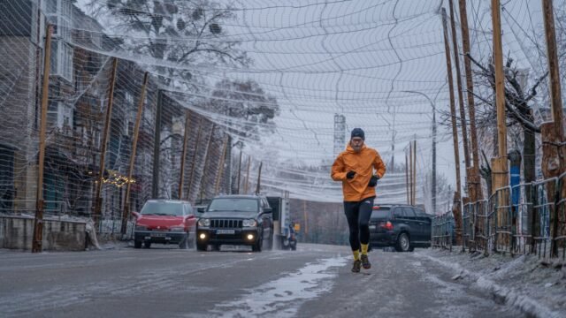 Fora do acidente, os carros circulam pelas ruas dentro da rede de túneis e as pessoas cuidam de suas vidas diárias da melhor maneira possível. Maksym Yevsiukov, de 20 anos, caminha em uma calçada gelada sob redes de drones. Ele diz que não se importa porque sabe que está aqui para salvar pessoas. Ele e sua família viveram sob ocupação russa.