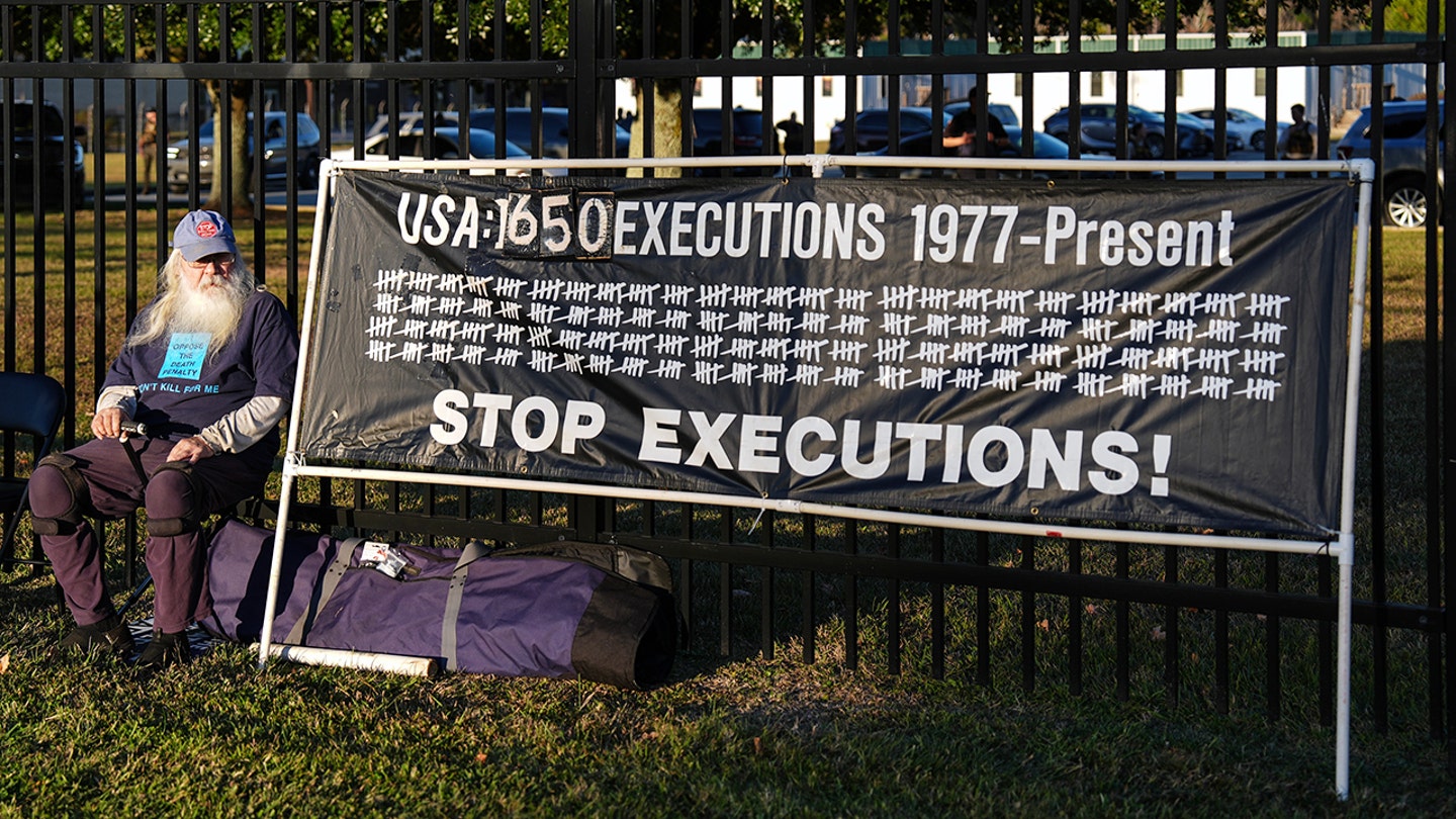 Um manifestante olha para fora do Instituto Correcional Broad River antes da execução de Stephen Bryant, sexta-feira, 14 de novembro de 2025, em Columbia, SC. (Matt Kelly/AP)