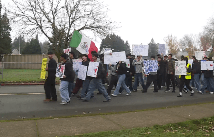 Portland, Oregon (KOIN) – Várias centenas de estudantes de escolas secundárias em Hillsboro saíram na sexta-feira, indo para o Centro Cívico de Hillsboro para uma manifestação de protesto contra as operações do ICE na comunidade. O aluno da Hillsboro High School, Manny Chavez, estava entre os alunos que desistiram. Chávez se tornou viral em novembro depois de se manifestar contra o ICE (…).