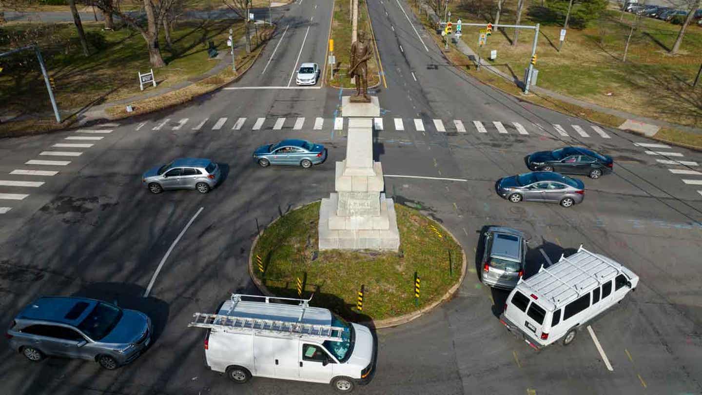 Um monumento ao General Confederado AP Hill ergue-se com destaque no cruzamento da Avenida Laburnum com a Hermitage Road em Richmond, Virgínia. Porém, após uma longa batalha, um juiz aprovou sua remoção e ele foi retirado em 2022. O ídolo está atualmente armazenado em local desconhecido. Os restos mortais de Hill, dentro da estátua, foram reenterrados no Cemitério Fairview, no condado de Culpeper, Virgínia. (Foto AP / Steve Helber, Arquivo)