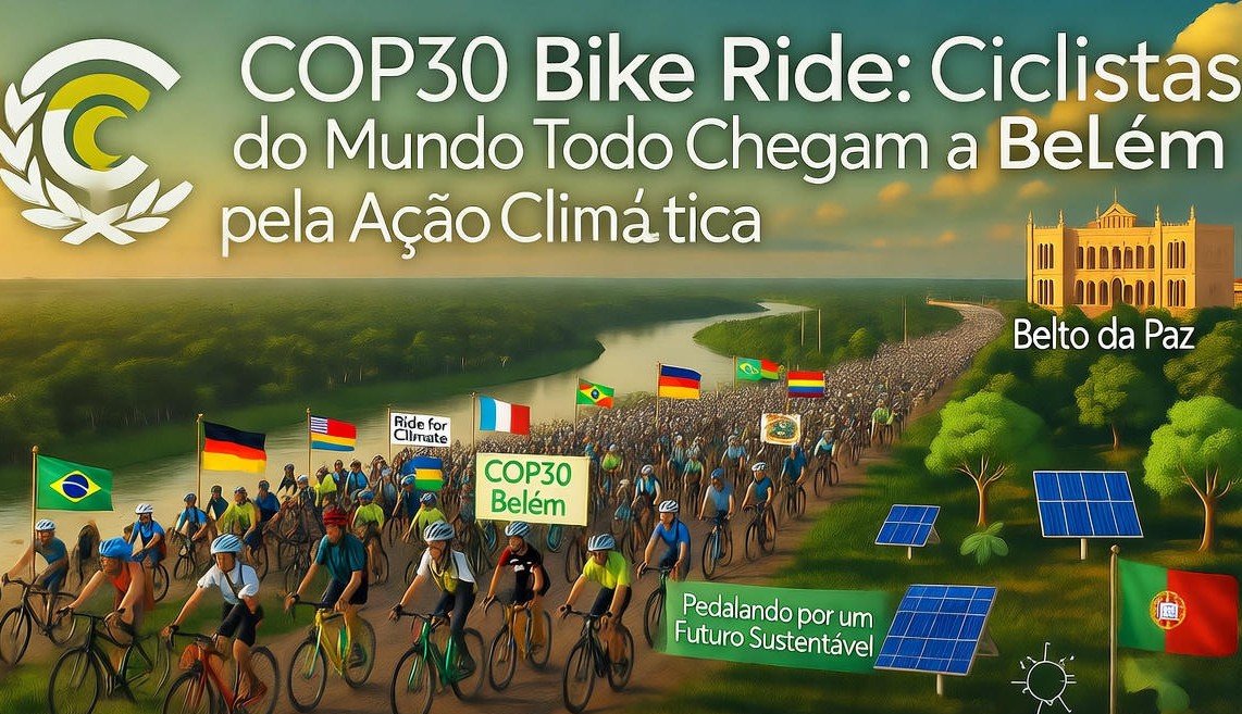 O COP30 Bike Ride começou em maio, em Baku, no Azerbaijão, e percorreu países como Turquia, Polônia, Alemanha, Holanda, Bélgica, Itália, França, Espanha e Portugal, antes de embarcar rumo ao Brasil.