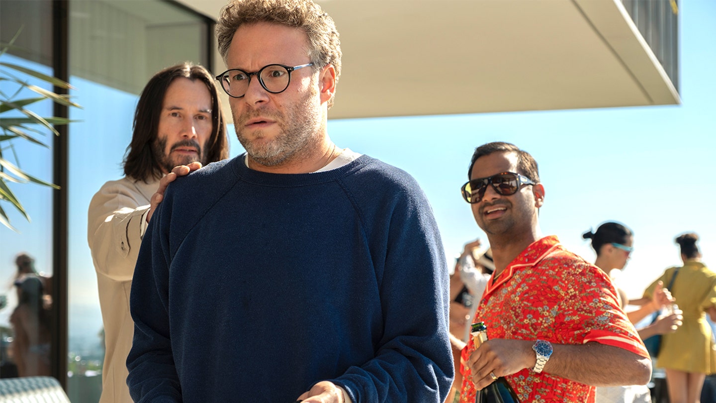 “Good Fortune” é estrelado por Keanu Reeves como Gabriel, Seth Rogen como Jeff e Aziz Ansari como Arz. (Eddie Chen/Lionsgate)