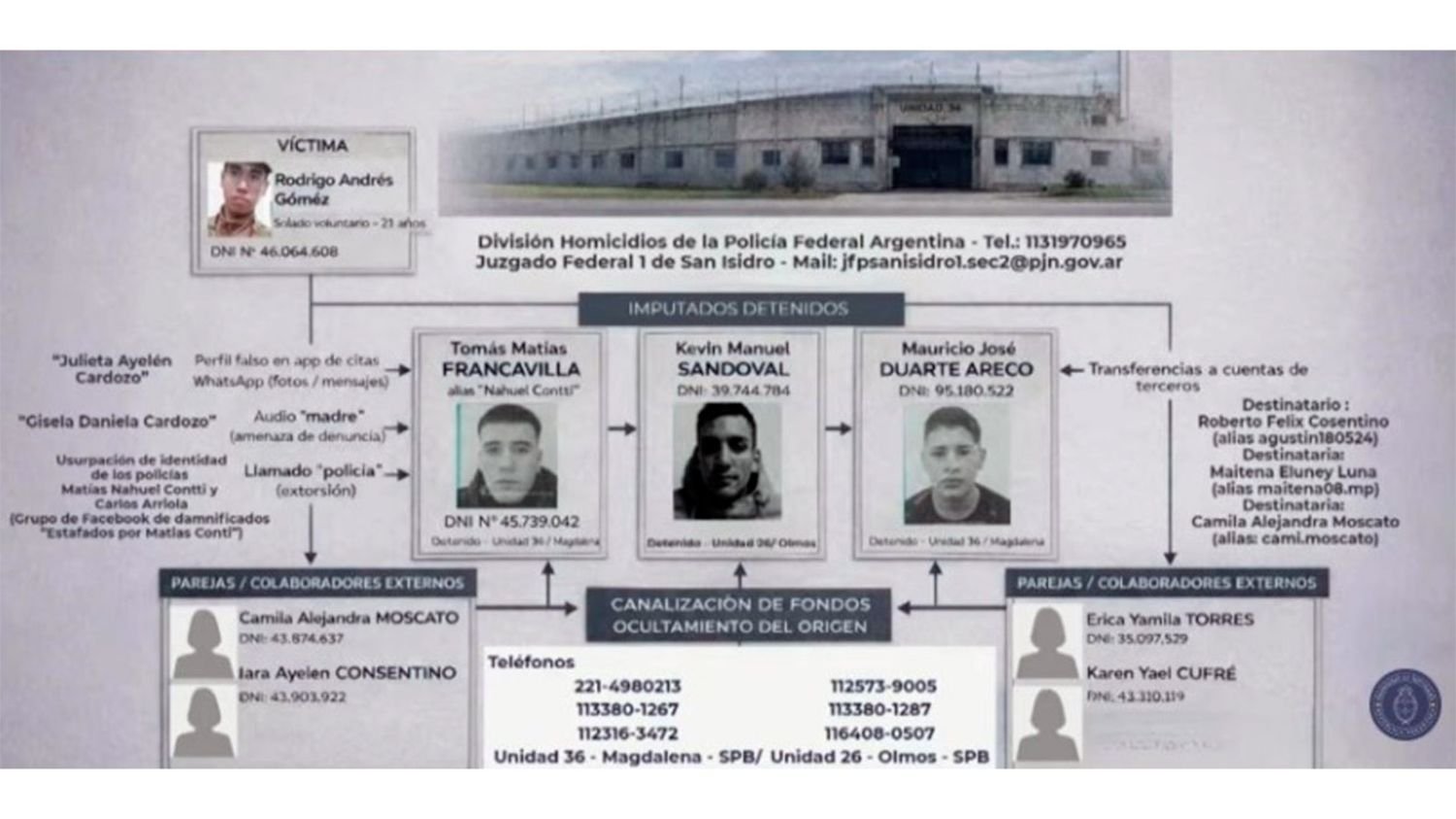 Um exemplo recente: na última quarta-feira, a polícia federal capturou uma gangue do complexo penitenciário Almafuerte, em Luzon de Cuo, Mendoza. Sextorções. Através de uma rede social ele contatou um homem em Chubut e cometeu a fraude cometida pelo soldado Gomez. A vítima, um pai, também estava à beira do suicídio. Felizmente ele reclamou.