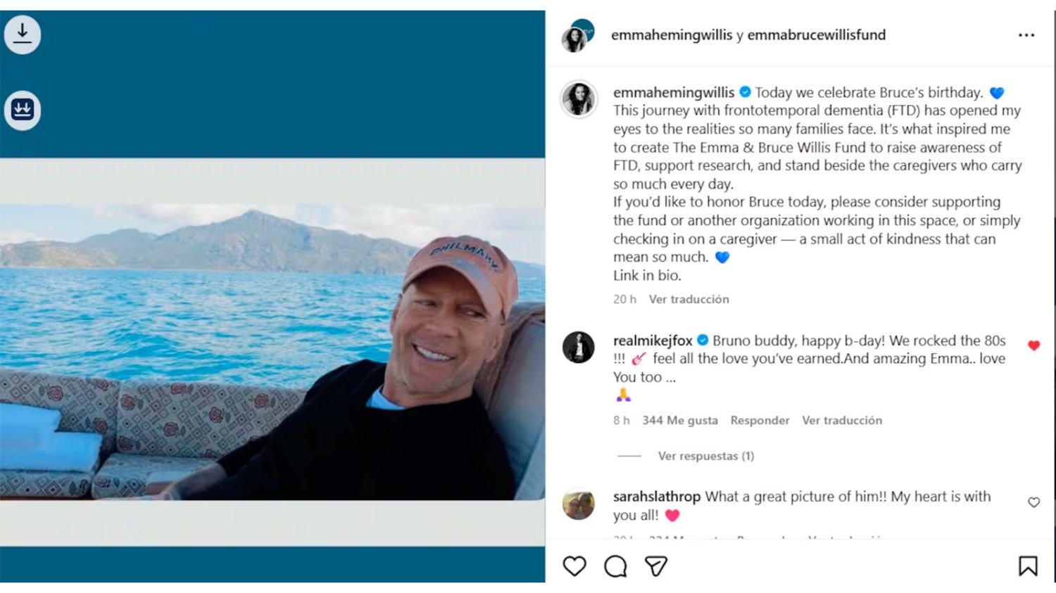 Entre as saudações que recebeu Bruce WillisE ainda assim, aí está Michael J. RaposaOutro ator que enfrenta condições de saúde complicadas. “‘Bruno’, amigo, feliz aniversário. Estamos na década de 80! Sinta todo o amor que você conquistou. Ema é incrível. Eu também te amo”, escreveu ele.