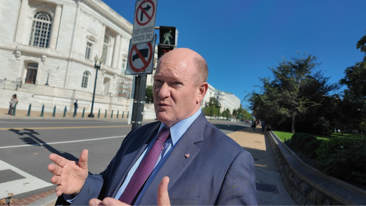 O senador Chris Coons, D-Del., caminha pelo metrô do Senado no Capitólio dos EUA, em Washington, janeiro de 2025. (Anna Moneymaker/Getty Images)