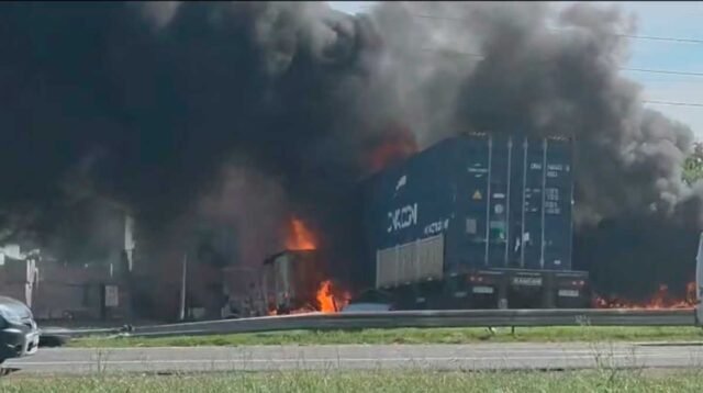 A magnitude do impacto gerou uma coluna de fumaça visível por vários quilômetros e o colapso total do trânsito nos dois sentidos. As equipes de emergência pediram aos motoristas que evitassem a área e deixassem a estrada aberta para ambulâncias e caminhões-pipa.