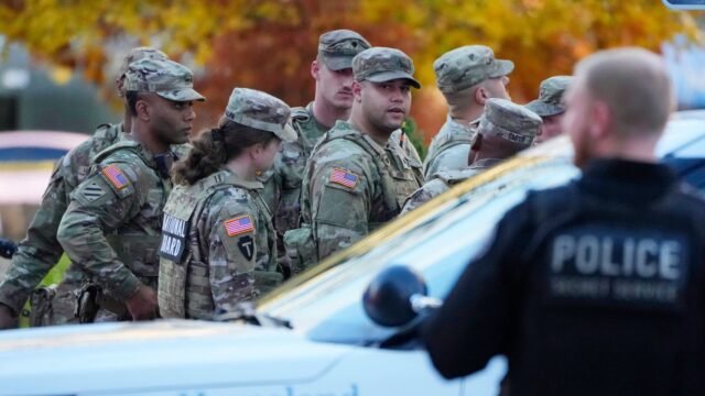 O pessoal de emergência isolou a área perto de onde os soldados da Guarda Nacional foram destacados. Fotos: AP