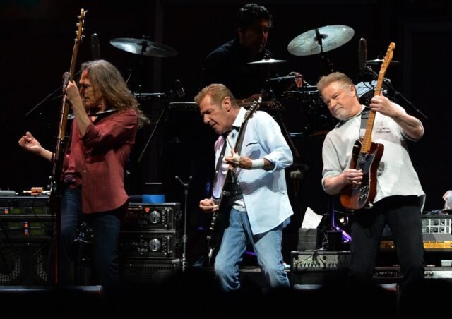 Comumente conhecidos como Eagles, mas sem “the” em seus álbuns de covers, o grupo acumulou 14 títulos de platina no total, com vendas combinadas nos EUA de cerca de 126,5 milhões. O grupo continua vivo com Henley, Walsh, Schmit, Vince Gill e Deacon Frey, filho de Glenn Frey, que morreu em 2016 aos 67 anos.