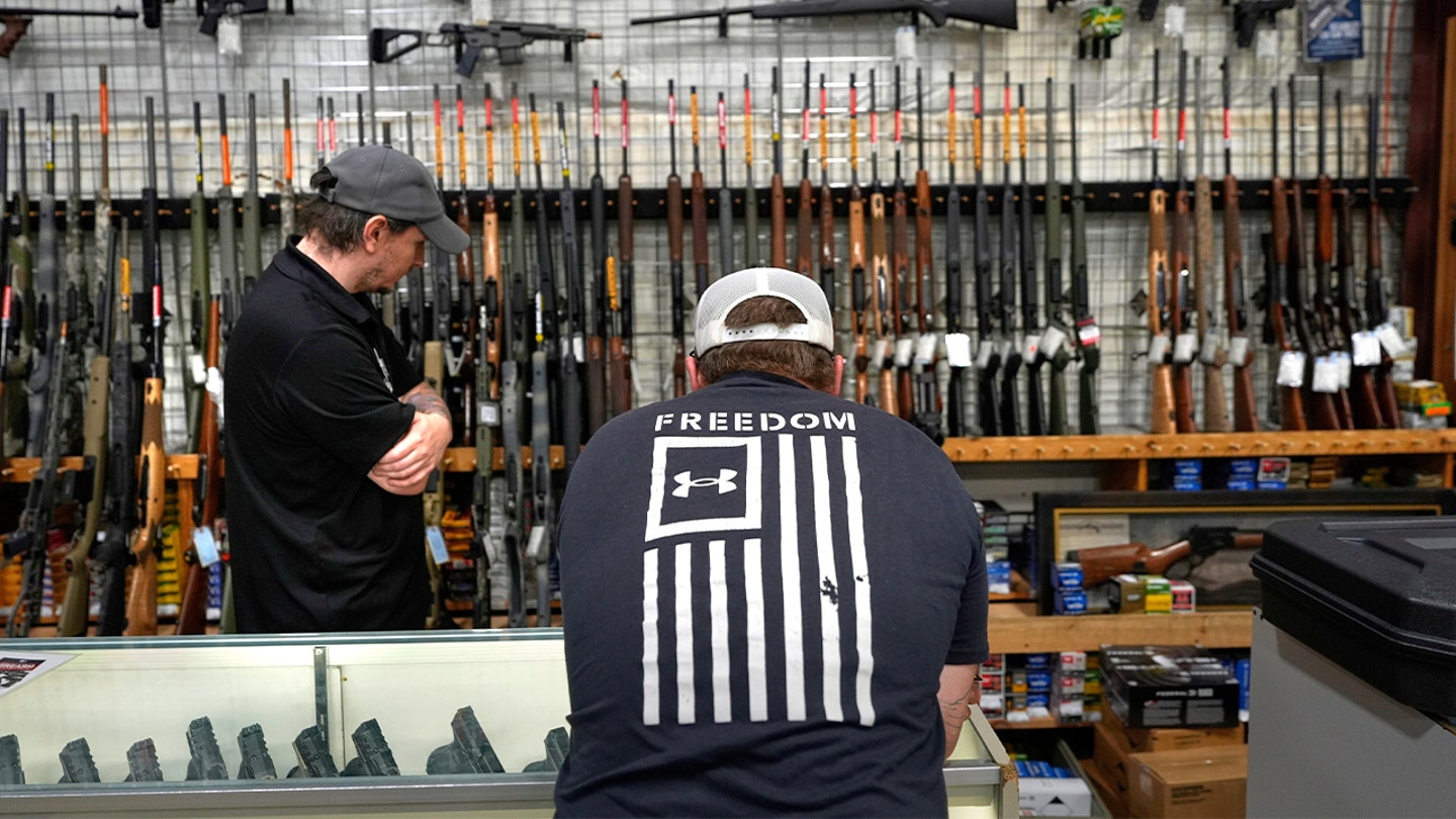 Um cliente faz compras na Maine Military Supply em Holden, Maine, terça-feira, 4 de novembro de 2025. (Robert F. Bucati/AP)