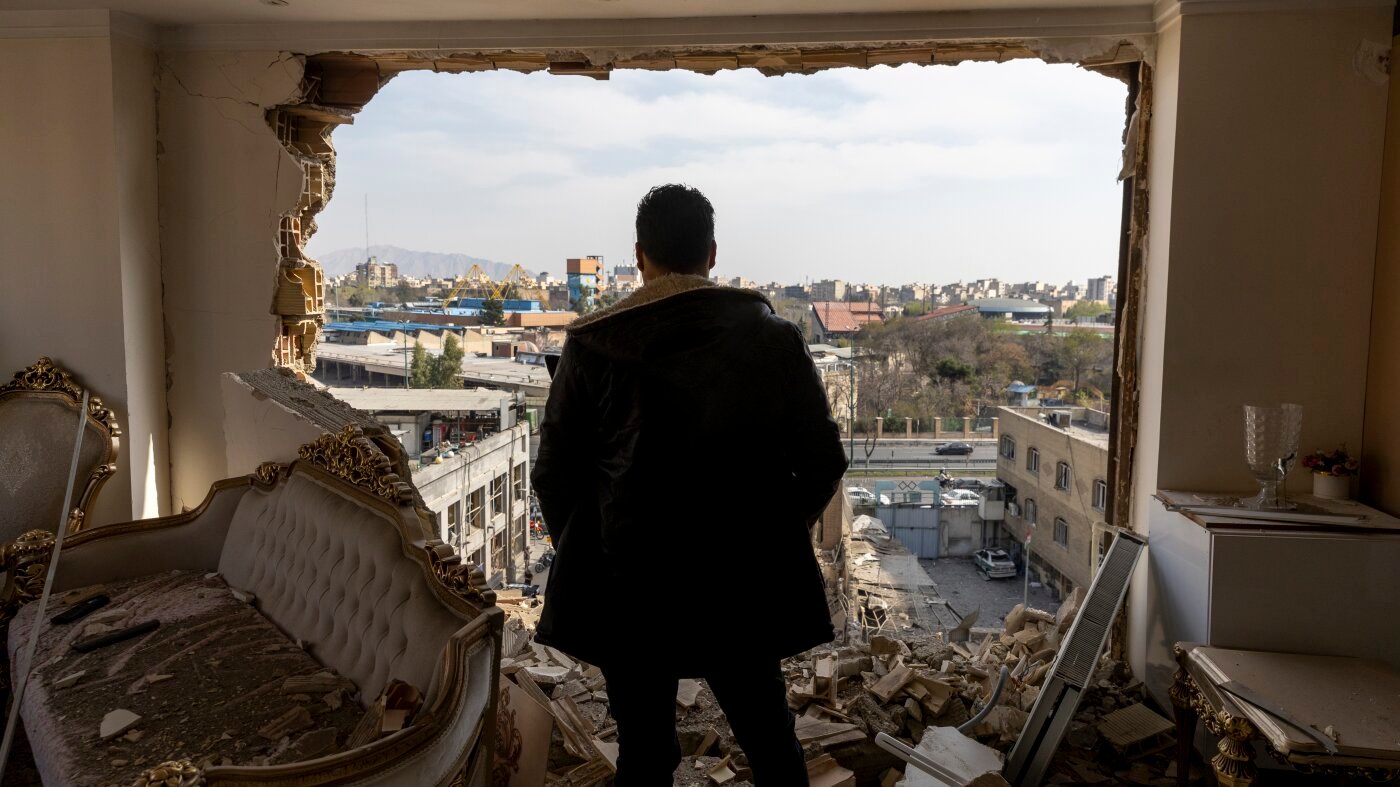 Um homem está em uma residência ferida em Teerã, em 14 de março.