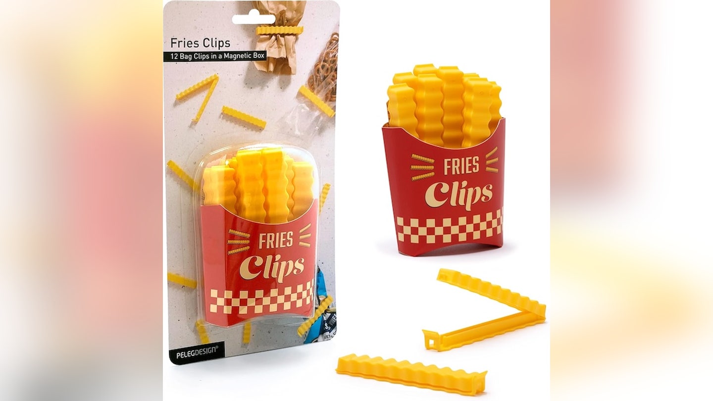 Estes são 12 clipes de comida As batatas fritas de papelão ondulado são moldadas e embaladas em uma caixa magnética que se parece com um saco de papel para fritar. Perfeitos para selar sacos de batatas fritas, pão, macarrão ou grãos, são úteis e adoráveis.