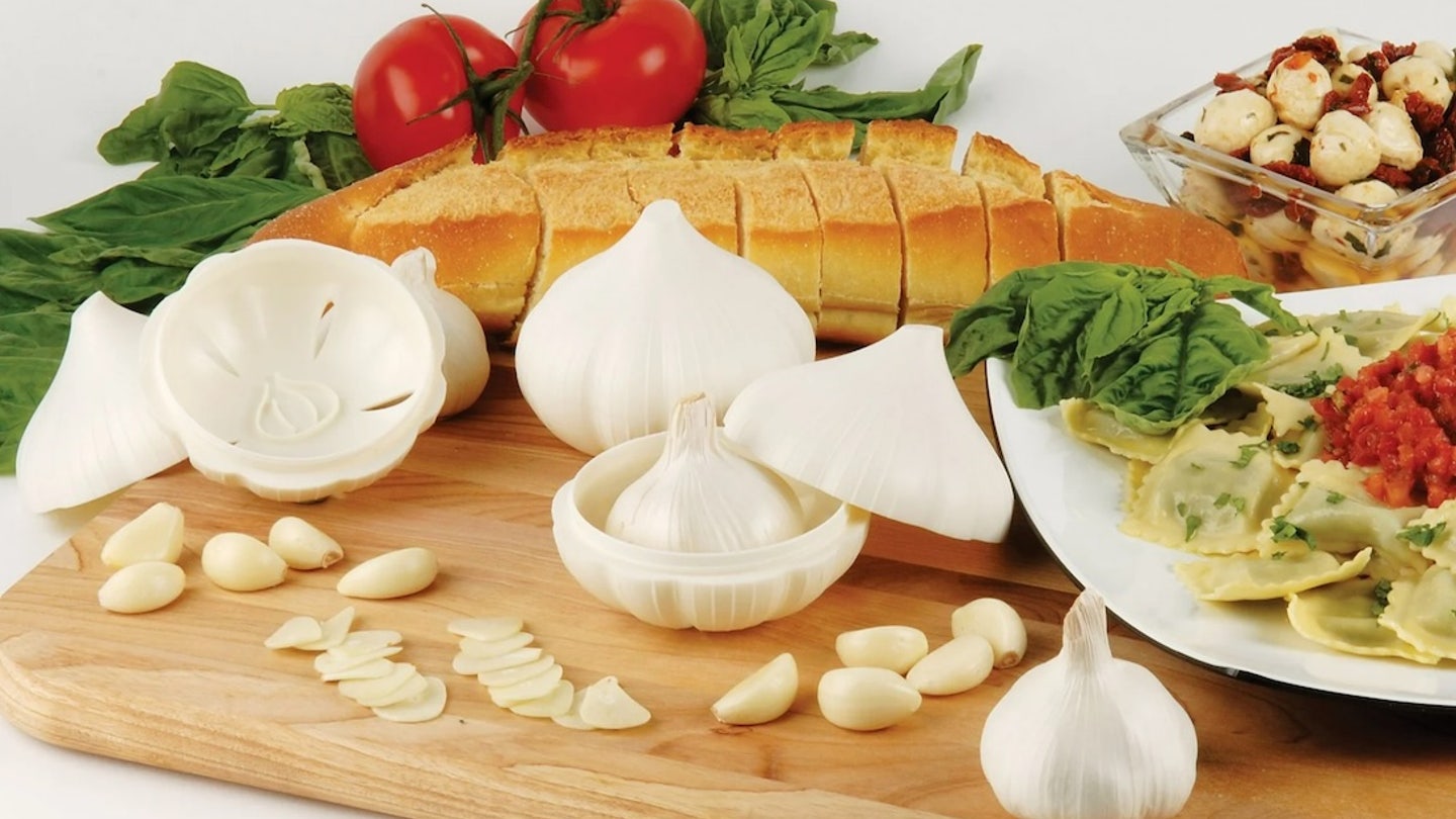 Projetado para armazenar uma única cabeça de alho, este Recipiente em forma de alho Ajuda a prolongar o frescor por 30 a 45 dias. Feito de materiais sem BPA e que podem ser lavados na máquina de lavar louça, é uma adição extravagante, mas funcional, a qualquer balcão de cozinha.