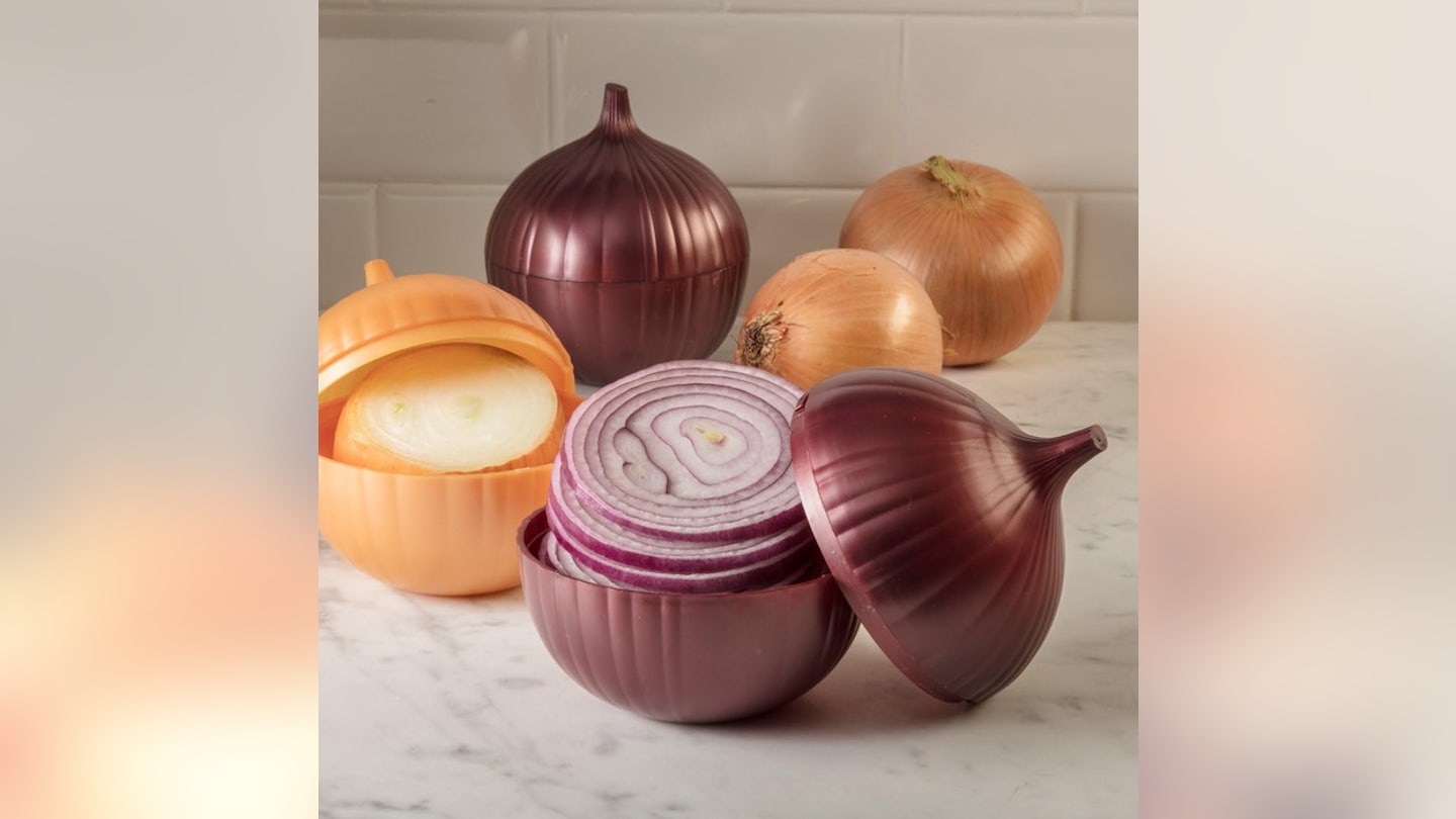 Esse Recipiente herméticoTem o formato de uma cebola verdadeira, perfeita para guardar cebolas cortadas sem cheirar todo o resto. O design sem BPA pode ser lavado na máquina de lavar louça e veda firmemente para manter o frescor e os odores.