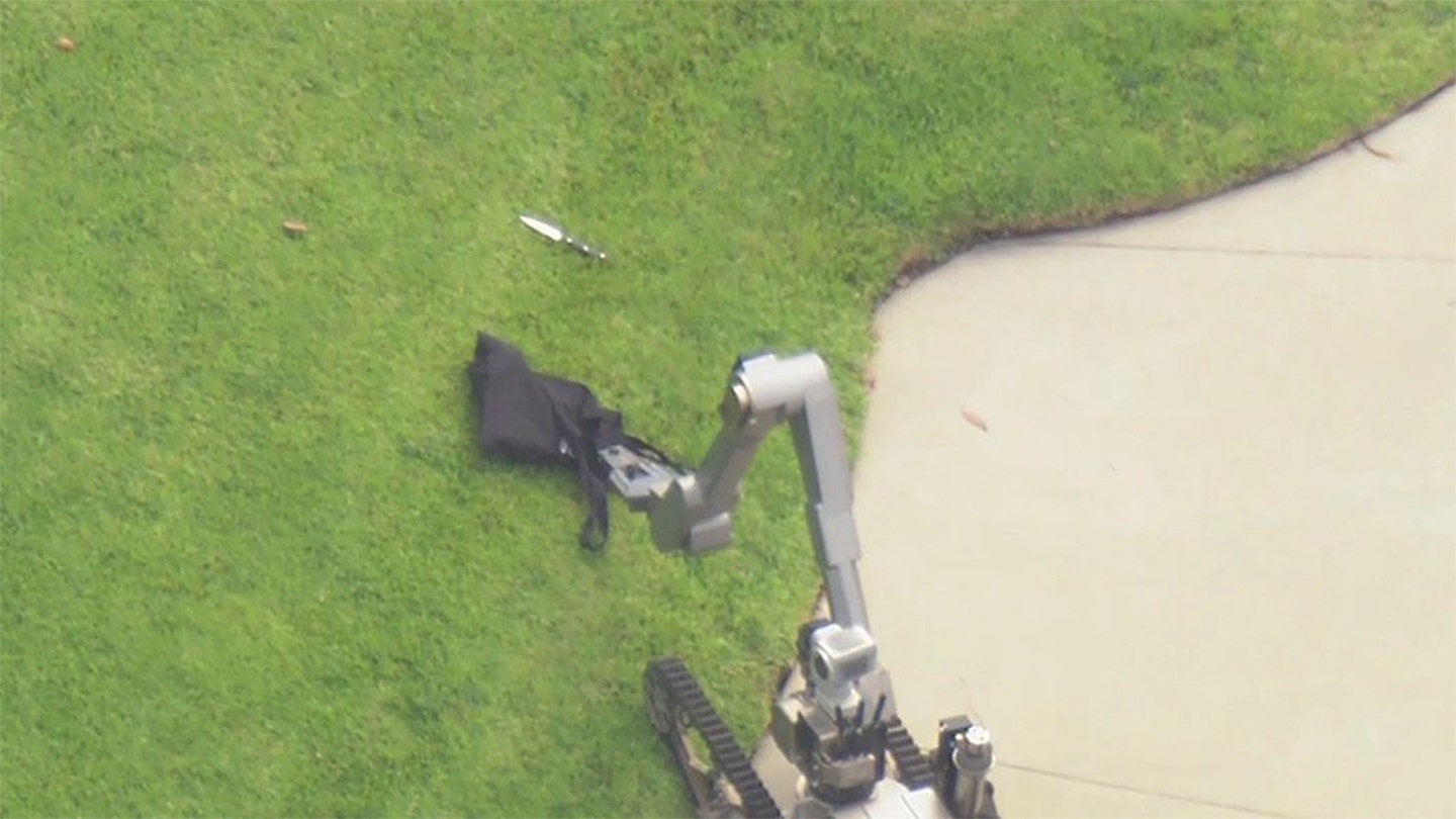 Da cena, a filmagem parecia uma faca e uma mochila na grama perto do Switzer Learning Center. (Crédito: KKTV)
