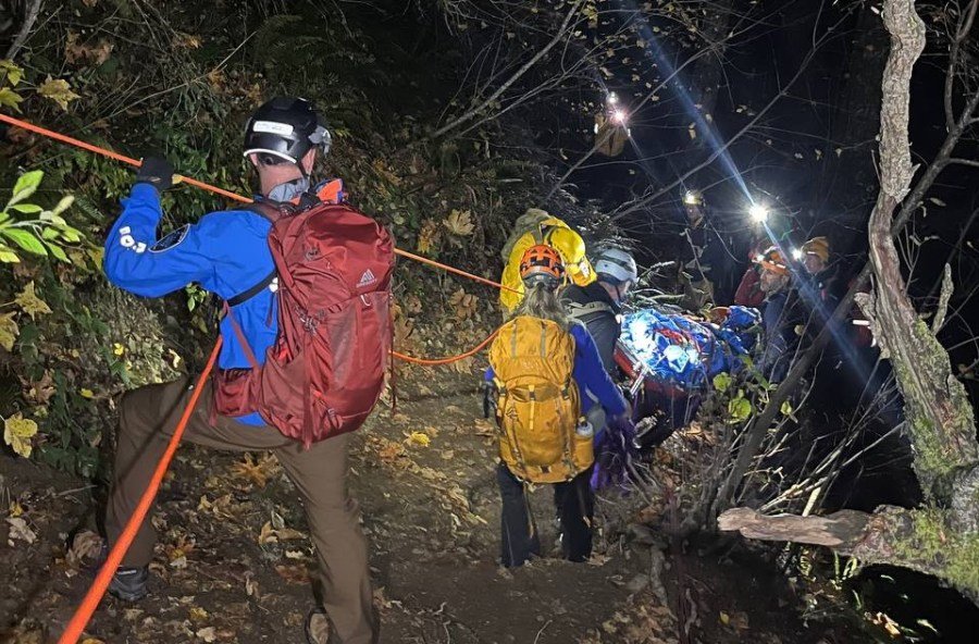 Com o apoio de 19 equipes de busca e resgate, Skamania EMS and Rescue e sua família, uma mulher foi resgatada com segurança de Wind Mountain após quebrar o tornozelo.