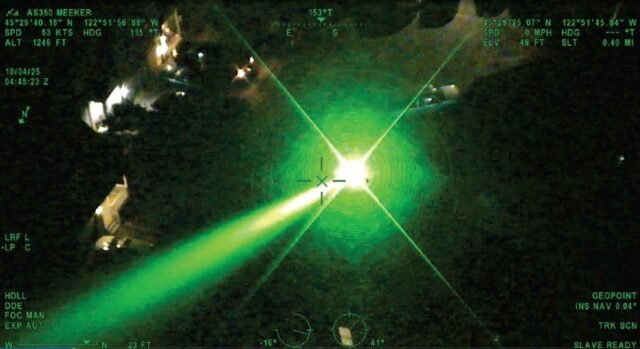 Durante o último mês, quatro cidadãos não registados Foi detido Depois que um deles mostrou um ponteiro laser em um voo policial. Sábado, voos médicos são Desviado Folheto da Oregon Health and Science University incentiva as pessoas a iluminar lasers em helicópteros.