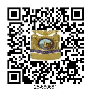 Código QR para upload de vídeo do caso de assassinato de Crystal Pendergraf em Portland. Outubro de 2025 (Cortesia do Departamento de Polícia de Portland).