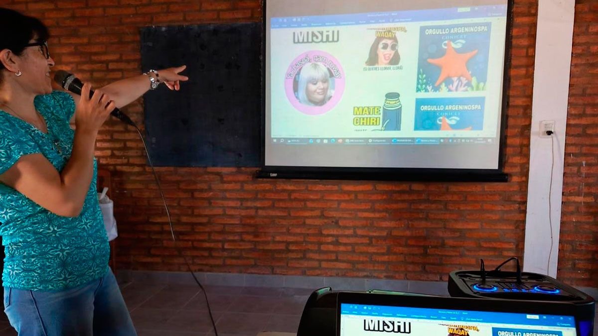 A primeira oficina foi sobre “Leitura de textos quíchuas e produção de adesivos em quíchua”, destinada a alunos do 4º, 5º e 6º ano. Nesta experiência, os jovens trabalharam com textos narrativos em quíchua e espanhol, fortalecendo a ligação com a língua escrita, e depois em quíchua para fortalecer o uso diário fazendo expressões em quíchua.