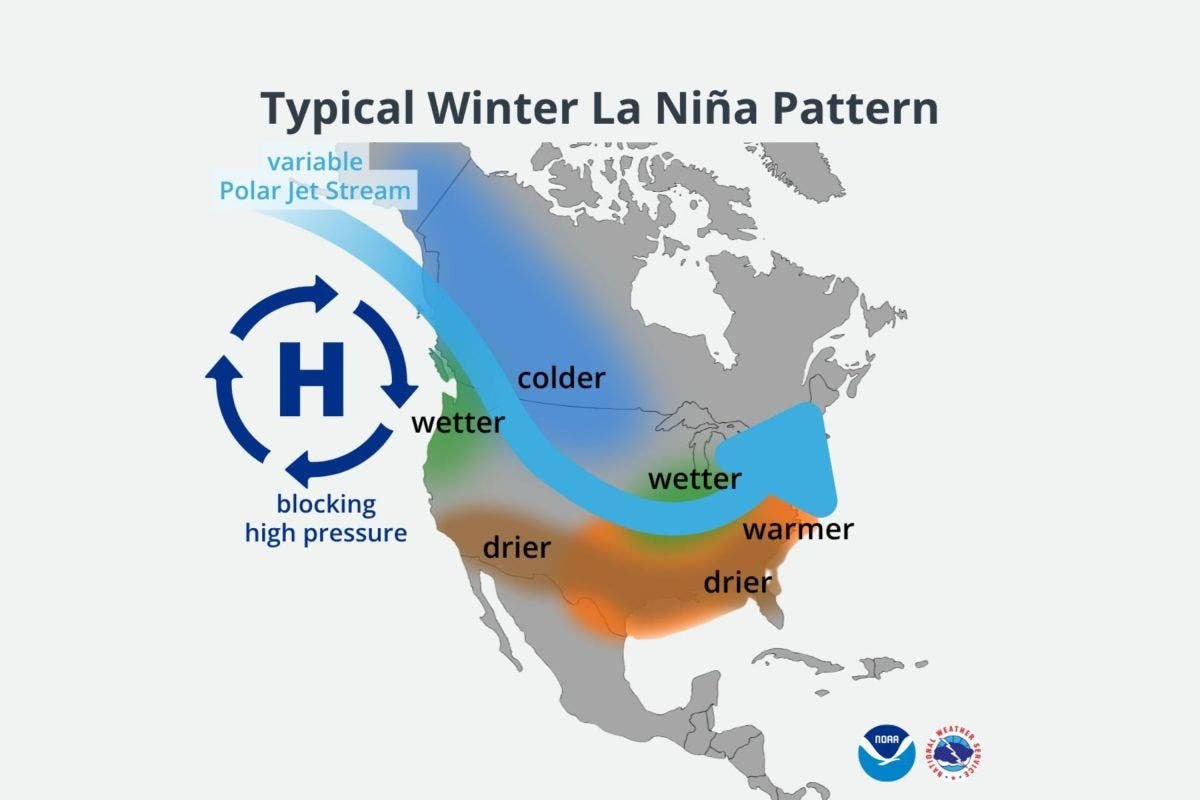 Embora se espere que a Lei Nina seja fraca, o NWS disse que ainda afetaria o próximo inverno.