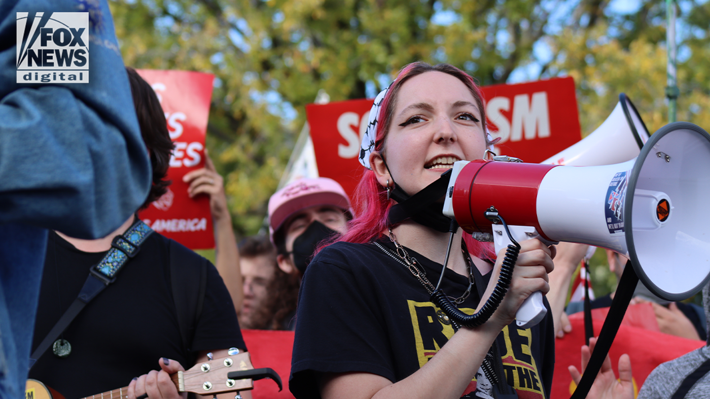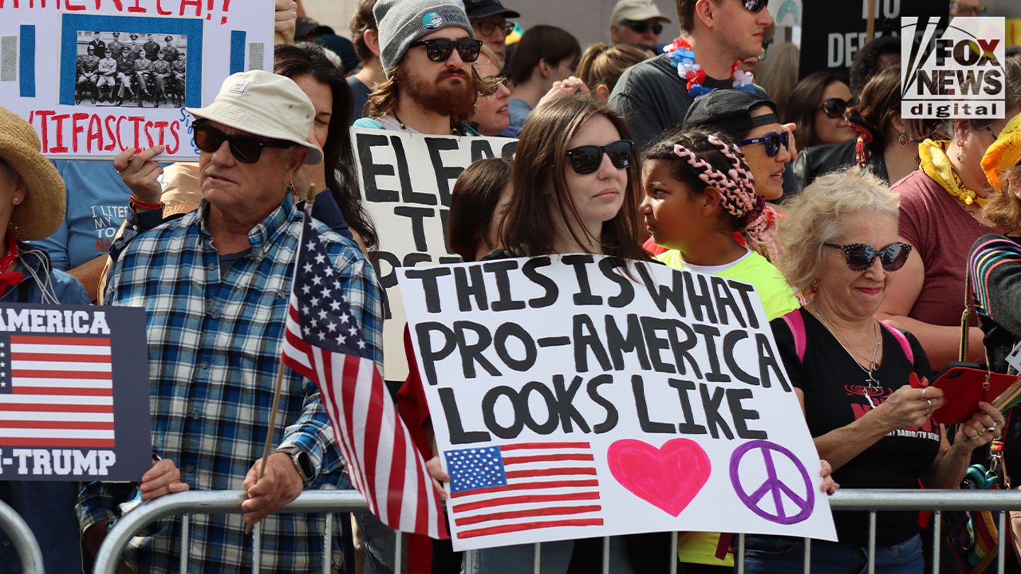 Manifestantes se reúnem em Washington, DC para os protestos “No Kings” de sábado. (Fox News Digital/Emma Woodhead)