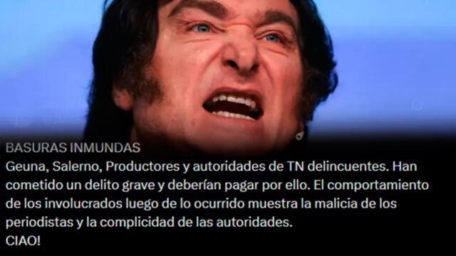 Através de uma mensagem nas redes sociais, o Presidente descreveu “Lixo sujo“Ele estendeu suas críticas aos jornalistas Luciana Geuna e Ignacio Salerno, e às autoridades do canal.intenção maliciosa”Manifesta e Suposta Complexidade na Estrutura Média.