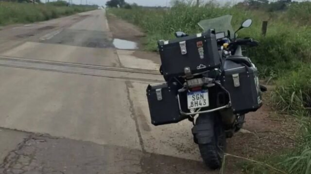 O acidente aconteceu quando o motociclista tentava fugir Inúmeros buracos cede, fazendo com que ele perca o controle Uma motocicleta BMW de alta cilindrada.
