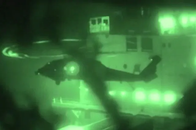 Vídeo divulgado pelo CENTCOM mostrou seus fuzileiros navais partindo do navio de assalto anfíbio USS Trípoli Antes de sobrevoar o Mar Arábico de helicóptero e ser capturado Touska.