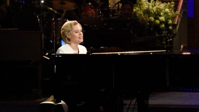 Zucker discordou de Kate McKinnon enquanto Hillary Clinton cantava “Hallelujah” de Leonard Cohen no primeiro episódio após a eleição de 2016. (Will Heath/NBCU Photo Bank/NBC Universal via Getty Images)