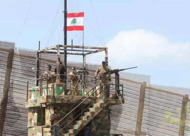 Exército libanês na torre de vigia em Naqoura, perto da fronteira com Israel – foto de arquivo