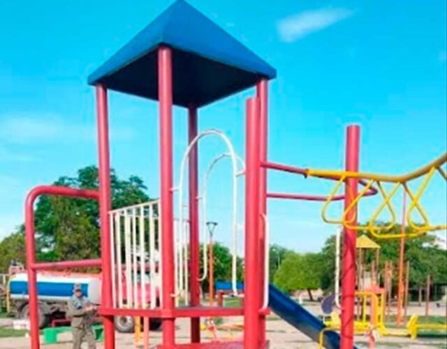 O Município Capital Mariano Moreno está realizando obras de manutenção geral no bairro Plaza del Malambo, onde foi restaurada a pintura do equipamento urbano.