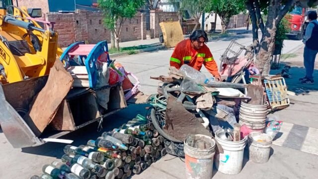 Funcionários agentes operacionais e de segurança Eles intervieram nos bairros de Abril e Independência, onde foram recolhidos nas casas objetos descartados, que representavam um potencial criadouro de transmissão de mosquitos, onde poderiam se acumular água da chuva e outros líquidos.