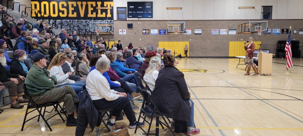 Portland, Oregon (KOIN) – Mais de 200 pessoas encheram as arquibancadas da Roosevelt High School em Portland no sábado para uma prefeitura pessoal organizada pela deputada Maxine Dexter (D-Ore.).