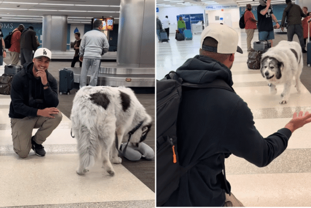 No momento em que um cachorro passou direto por seu dono no portão de desembarque de um aeroporto, a internet entrou em frenesi.