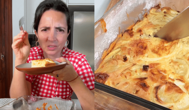Ele compartilhou o vídeo em sua conta do Instagram Cozinha da Paulina Ele elabora: «Dois ovos, leite, azeite, sal, pimenta e os temperos que você quiser. Alho em pó no meu caso. Os líquidos são batidos e a farinha é adicionada. No meu caso, farinha com fermento e farinha normal e fermento em pó. Quero dizer, um bolo.