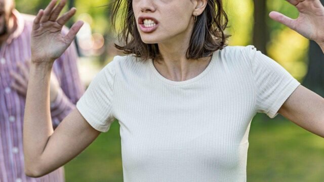 Um jovem e sua namorada tiveram uma discussão acalorada ao ar livre em um parque público. (pegou)