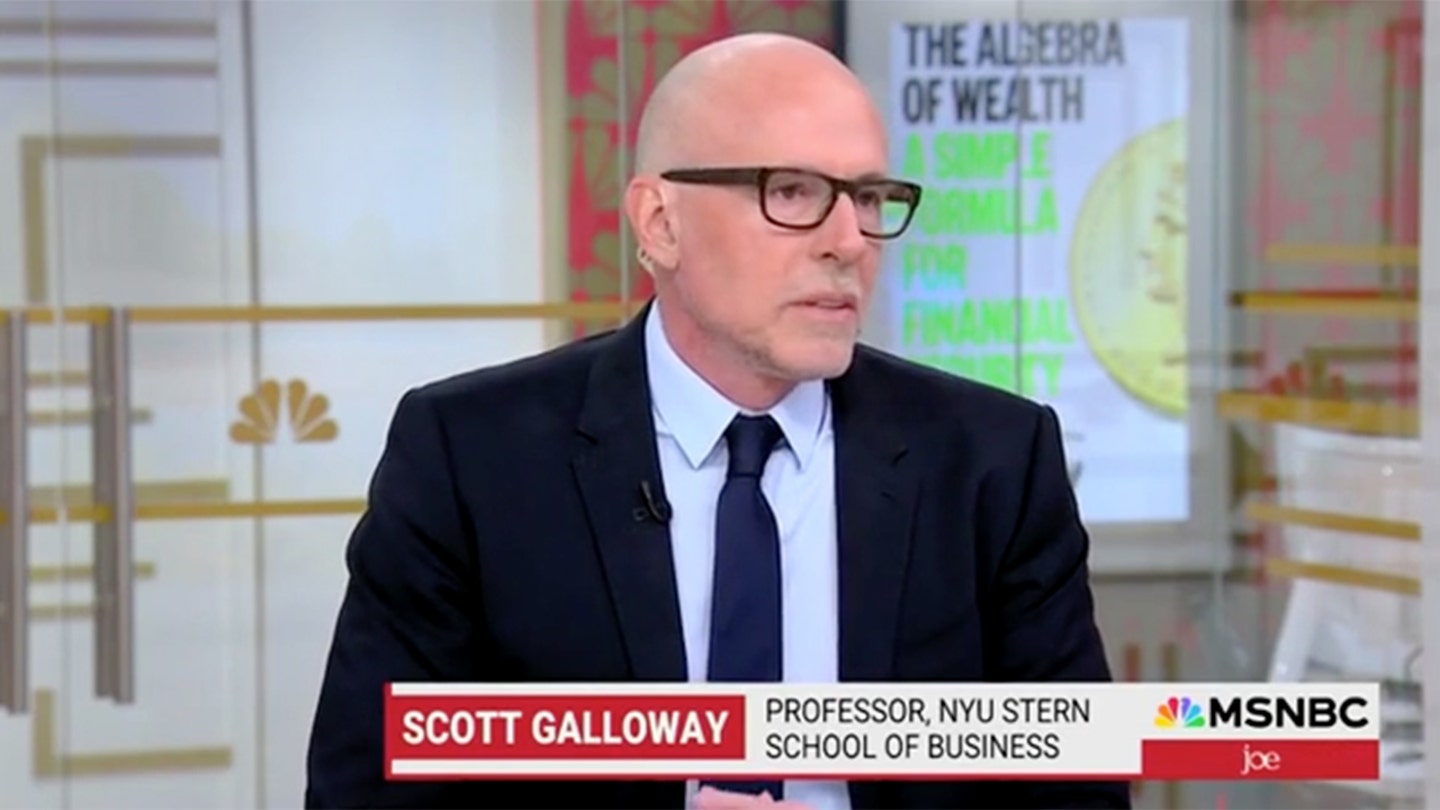 O professor da NYU, Scott Galloway, fala frequentemente sobre os problemas enfrentados pelos jovens, dizendo que esta geração enfrenta desafios únicos que ele não enfrenta. (Captura de tela/MSNBC)