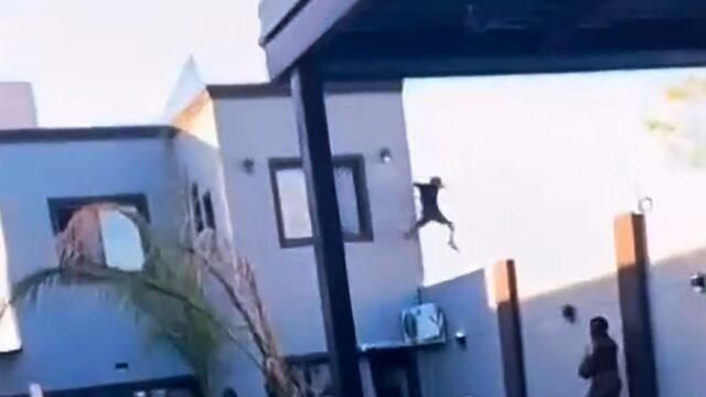 No meio do tiroteio, ele tentou escapar saltando em direção ao campo adjacente. Outro suspeito fez a mesma façanha momentos atrás.